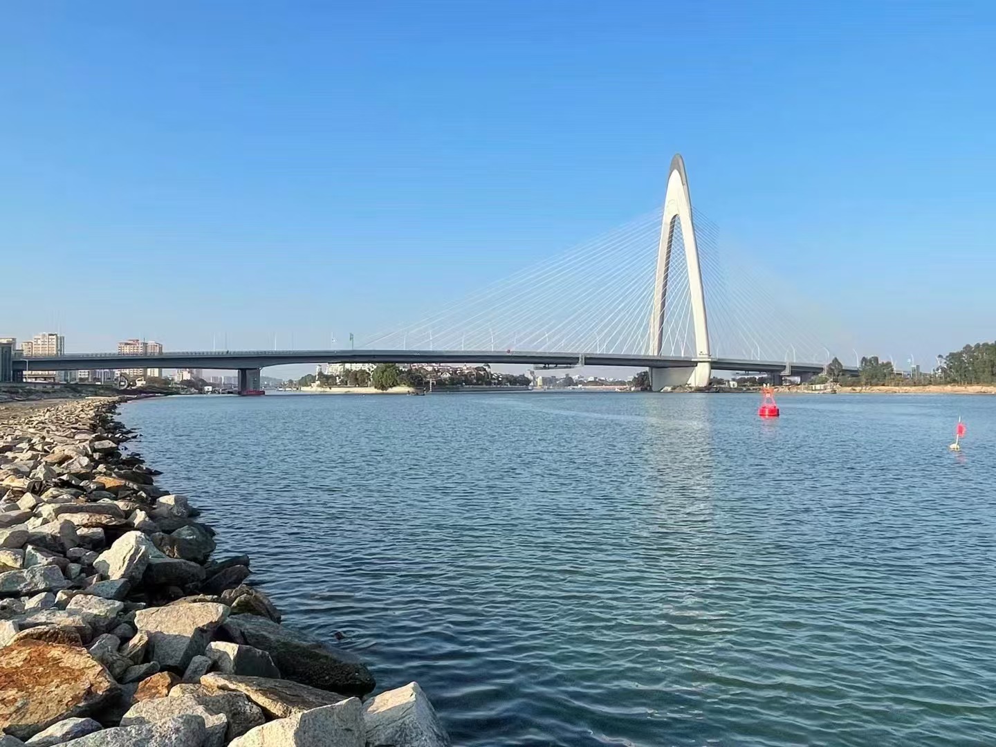 中山東路東延新津河大橋工程,項(xiàng)目預(yù)算總投資為86998.5萬(wàn)元。本項(xiàng)目西起現(xiàn)狀中山東路,上跨濱江大道、沿江路、西岸堤路、新津河、東岸堤路、青年路,且在新津河?xùn)|側(cè)與青年路設(shè)置立交互通,東接中山東路東延段,長(zhǎng)1600米,主橋?qū)?4米,雙向八車(chē)道,規(guī)劃為城市主干路。